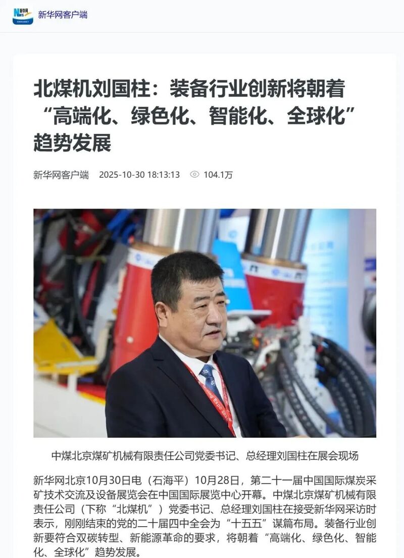 新华网北京10月30日电(石海平)10月28日,第二十一届中国国际煤炭采矿技术交流及设备展览会在中国国际展览中心开幕。星空体育APP网站/手机版下载/官网登录入口(下称“北煤机”)党委书记、总经理刘国柱在接受新华网采访时表示,刚刚结束的党的二十届四中全会为“十五五”谋篇布局。装备行业创新要符合双碳转型、新能源革命的要求,将朝着“高端化、绿色化、智能化、全球化”趋势发展。